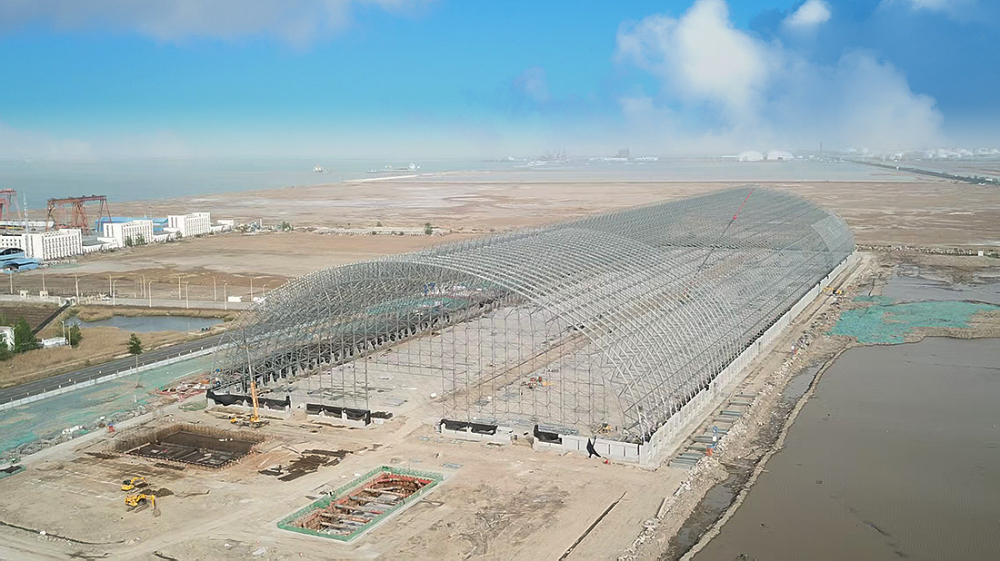 中新鋼鐵1號料棚儲煤倉網(wǎng)架工程