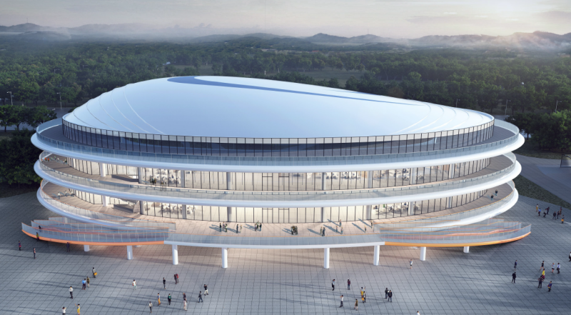 傳統(tǒng)網(wǎng)架安裝方式(如高空散裝、分塊吊裝)存在高空作業(yè)風(fēng)險(xiǎn)高、施工作業(yè)面開闊、場(chǎng)地道路硬化適宜大型機(jī)械進(jìn)出場(chǎng)要求等問(wèn)題。為此,項(xiàng)目團(tuán)隊(duì)經(jīng)多輪論證,最終選用液壓同步頂升技術(shù):將網(wǎng)架在樓層面拼裝成整體(分片單元),通過(guò)液壓提升器與臨時(shí)支撐體系配合,同步、勻速將其從3層樓面提升至設(shè)計(jì)高度,大幅降低高空作業(yè)風(fēng)險(xiǎn),提升施工效率。