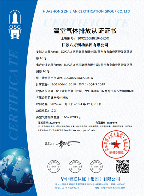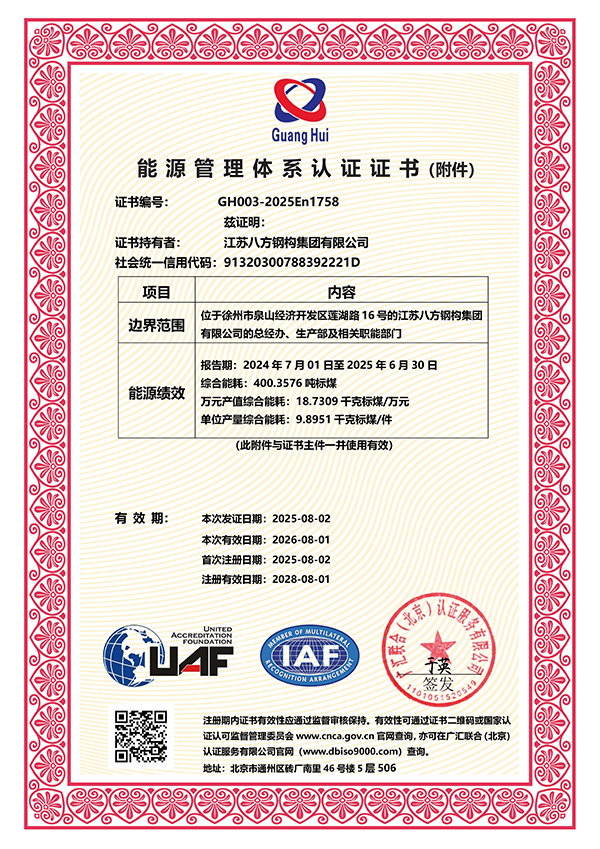 深耕綠色智造,推進雙碳戰(zhàn)略八方鋼構獲能源管理與雙碳體系認證