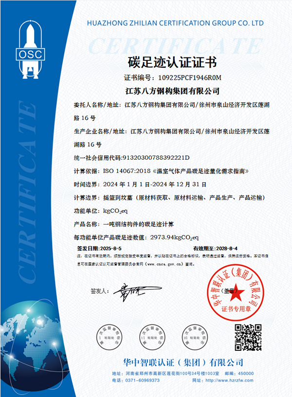 近日,八方鋼構集團正式通過能源管理和雙碳體系認證,標志著公司在綠色制造、節(jié)能減排和可持續(xù)發(fā)展領域邁出關鍵一步。