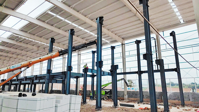 3. Steel frame: Steel frames come in single-layer and multi-layer types, with solid belly and lattice members. Multi story steel frames can effectively utilize building space, reduce the height of buildings, have a simple and beautiful shape, neat component specifications, easy installation on construction sites, and fast construction speed. They are currently the main structural form of lightweight structures and are mostly made of H-shaped steel.